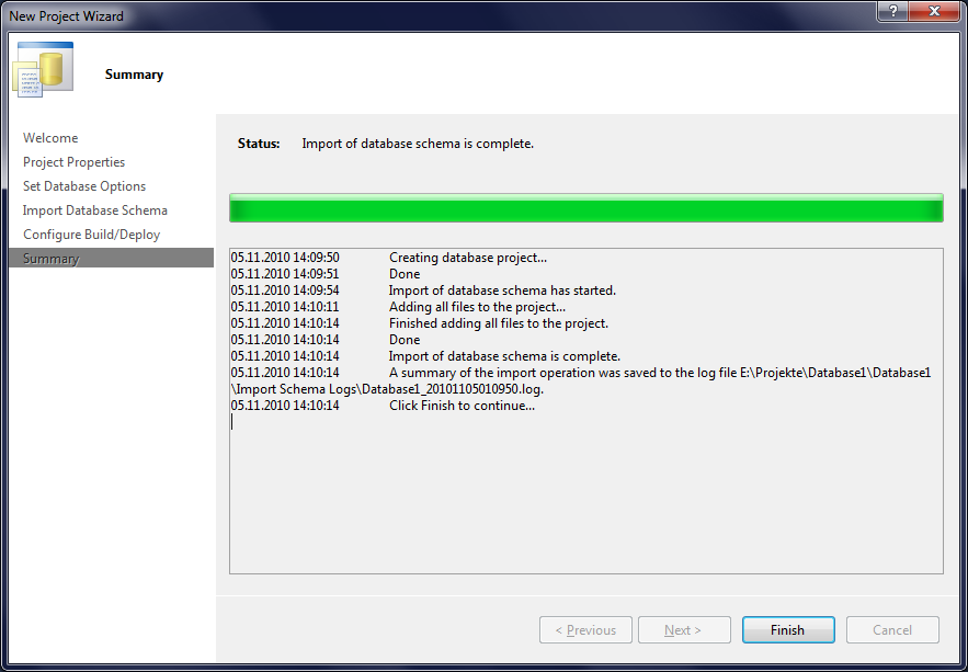 Und schon haben wir den “SourceCode” unserer Datenbank als Offline Version. Unser Datenbankprojekt sieht nun so aus: