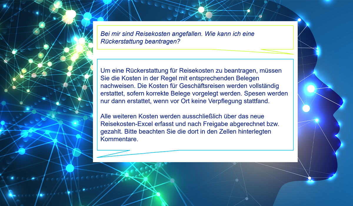 Im Unternehmen existieren Richtlinien, Regeln, Prozesse und Informationen, die man als Mitarbeiter beachten muss. Was aber, wenn man eine konkrete Frage hat, z. B. zur Erstattung von Reisekosten?